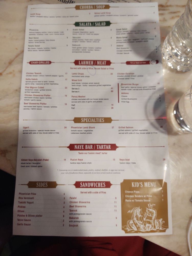 Phoenicia Resto & Lounge offers a vibrant and culturally rich dining experience in Vienna, VA. With a diverse menu featuring Mediterranean cuisine, there are plenty of pescatarian and vegetarian options available. The establishment boasts a trendy, classy, and casual atmosphere, perfect for dinner, late-night bites, or dessert. The venue offers various amenities, including live music, outdoor seating, and a full bar with happy hour specials. Customers rave about the impeccable service and flavorful dishes, such as feta cheese with tomatoes, lamb chops, and tabbouleh. The restaurant's buffet has also received high praise for its wide selection and quality. Whether you're looking to enjoy a relaxing meal or dance the night away, Phoenicia Resto & Lounge promises a memorable experience for all.